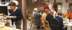 De frivillige laver et godt måltid mad, som vi nyder sammen